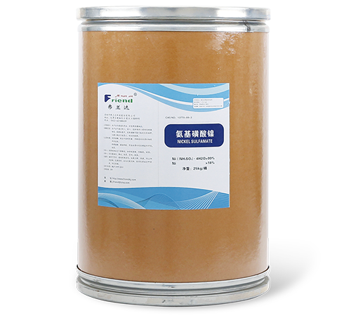 氨基磺酸鎳溶液(Nickel Sulfamate Solution) 分 子式:Ni(NH2SO3)2 分子量:250.87 性  狀:深綠色透明液體。 用 途:主要用于精密電鍍、電鑄、電子工業等。 包 裝:HDPE桶裝,每桶30公斤。 儲 運:運輸時包裝要密封,運輸過程中防止受熱,貯存在陰涼,通風處。